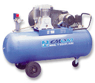 Con válvulas de seguridad, de retención, purgador, todas de bronce; disyuntor, manómetro, correderas para el motor, correas correspondientes y llave de salida de ½» de bronce.