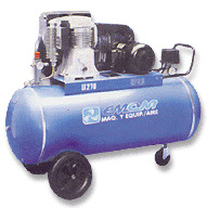Con válvulas de seguridad, de retención, purgador, todas de bronce disyuntor de corte automático, manómetro, correderas para el motor, correas y llave de salida esférica de ½».