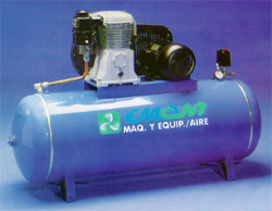 Con válvulas de seguridad y retención, purgador, todas en bronce, disyuntor de corte automático, manómetro, correderas para el motor, correas y llave de salida esférica de ¾».