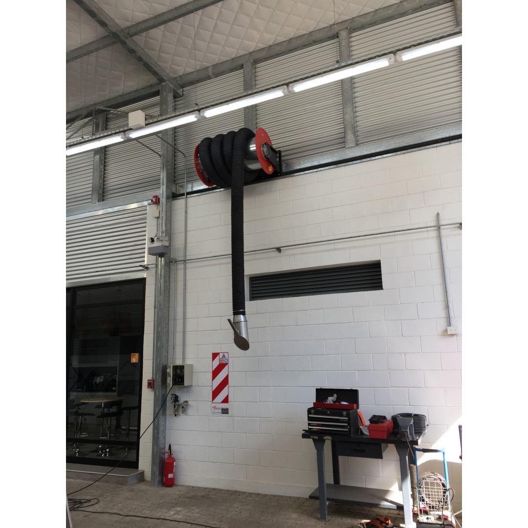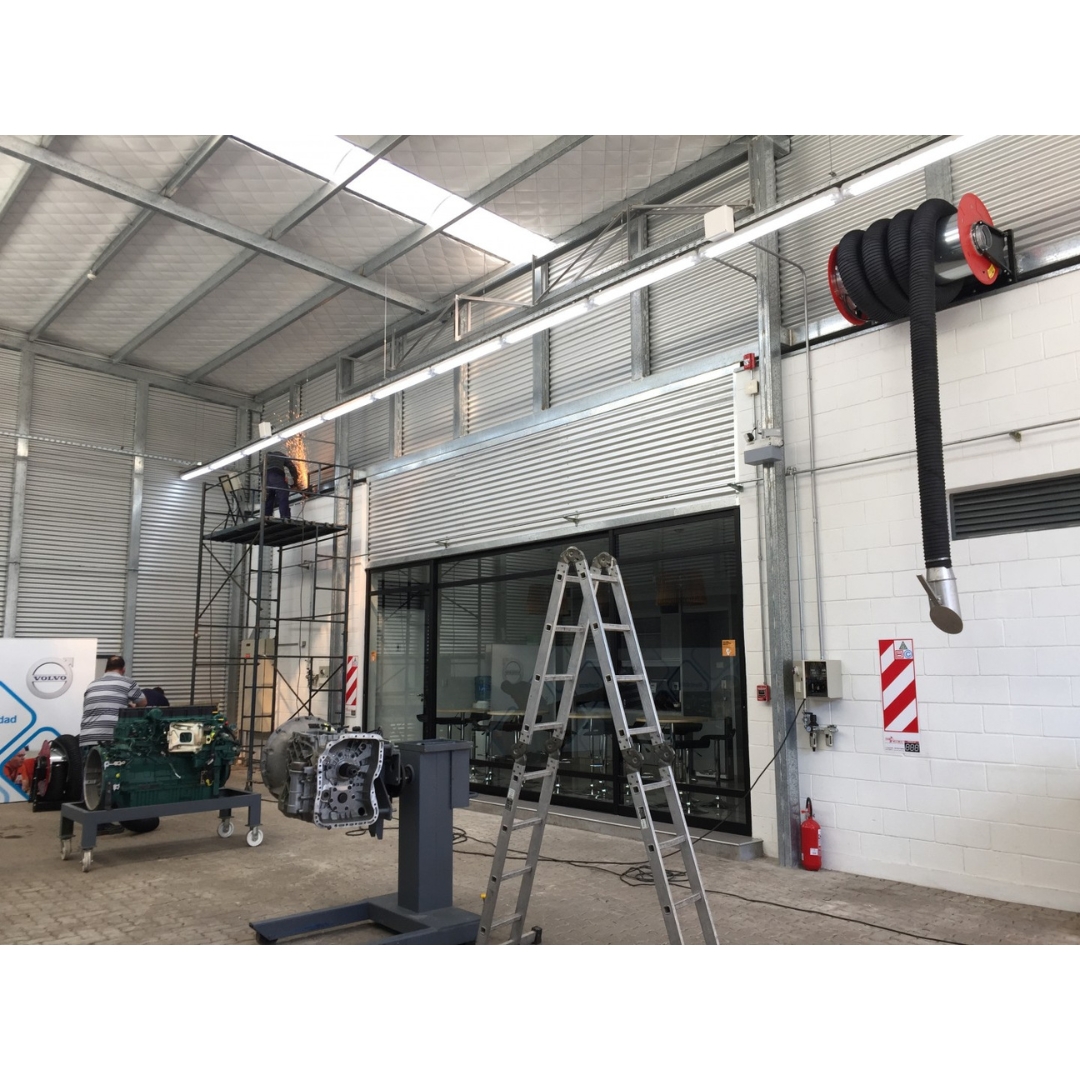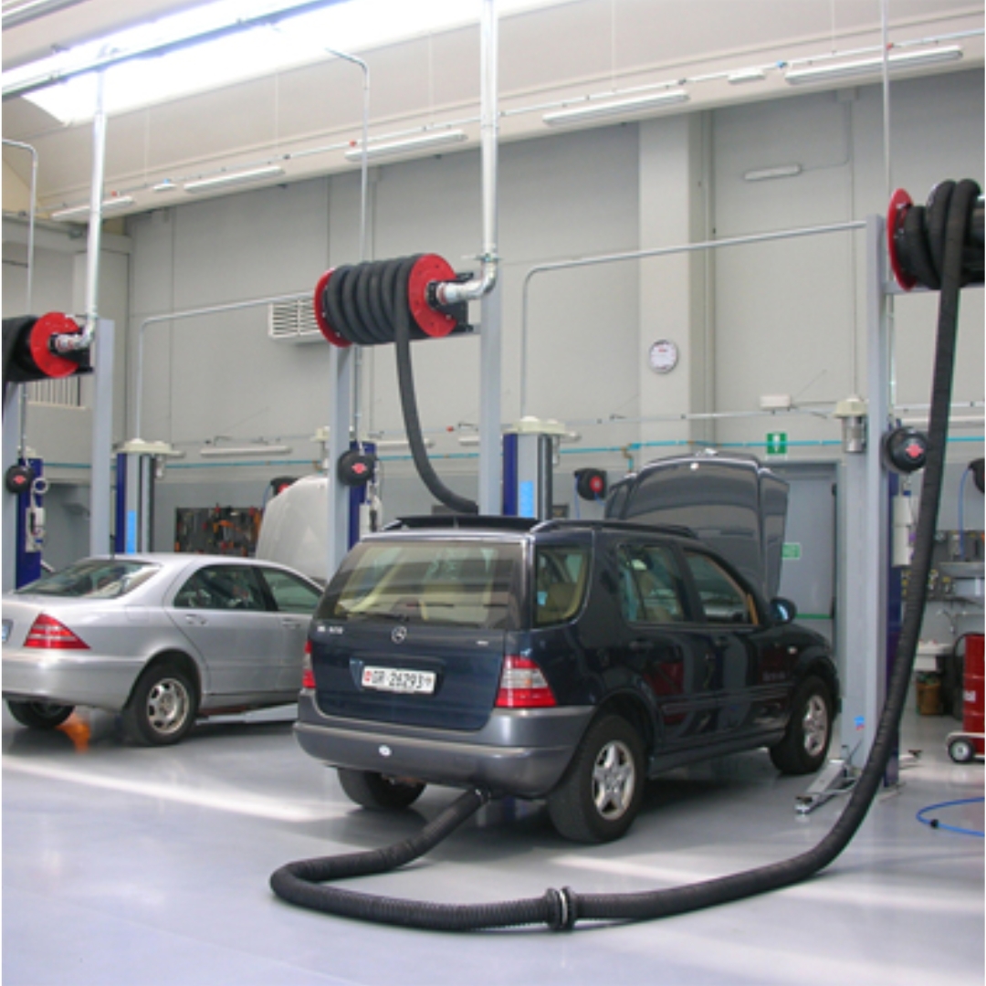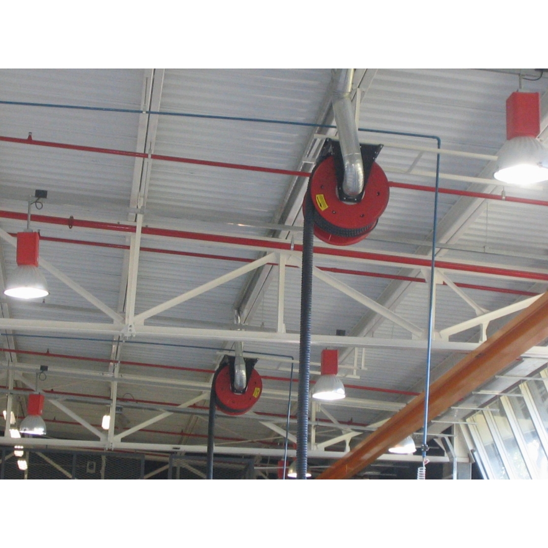 Una amplia gama de enrolladores cubre todas las necesidades de la succión y expulsión de los gases de escape para los talleres, centros de inspección, garajes, talleres de carrocería, almacenes y manejo interno. Disponible en varios tamaños y diámetros de tuberías para adaptarse al aumento de la capacidad de aire requerido: motocicleta, coches de media y alta potencia, furgonetas, camiones, autobuses y vehículos especiales.